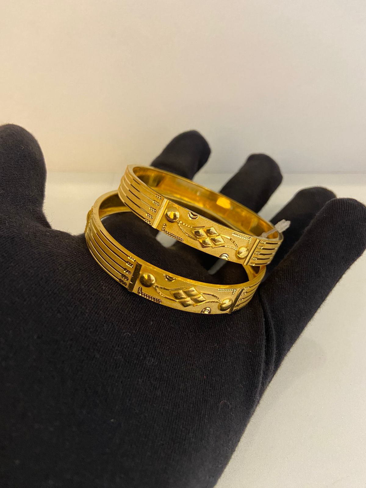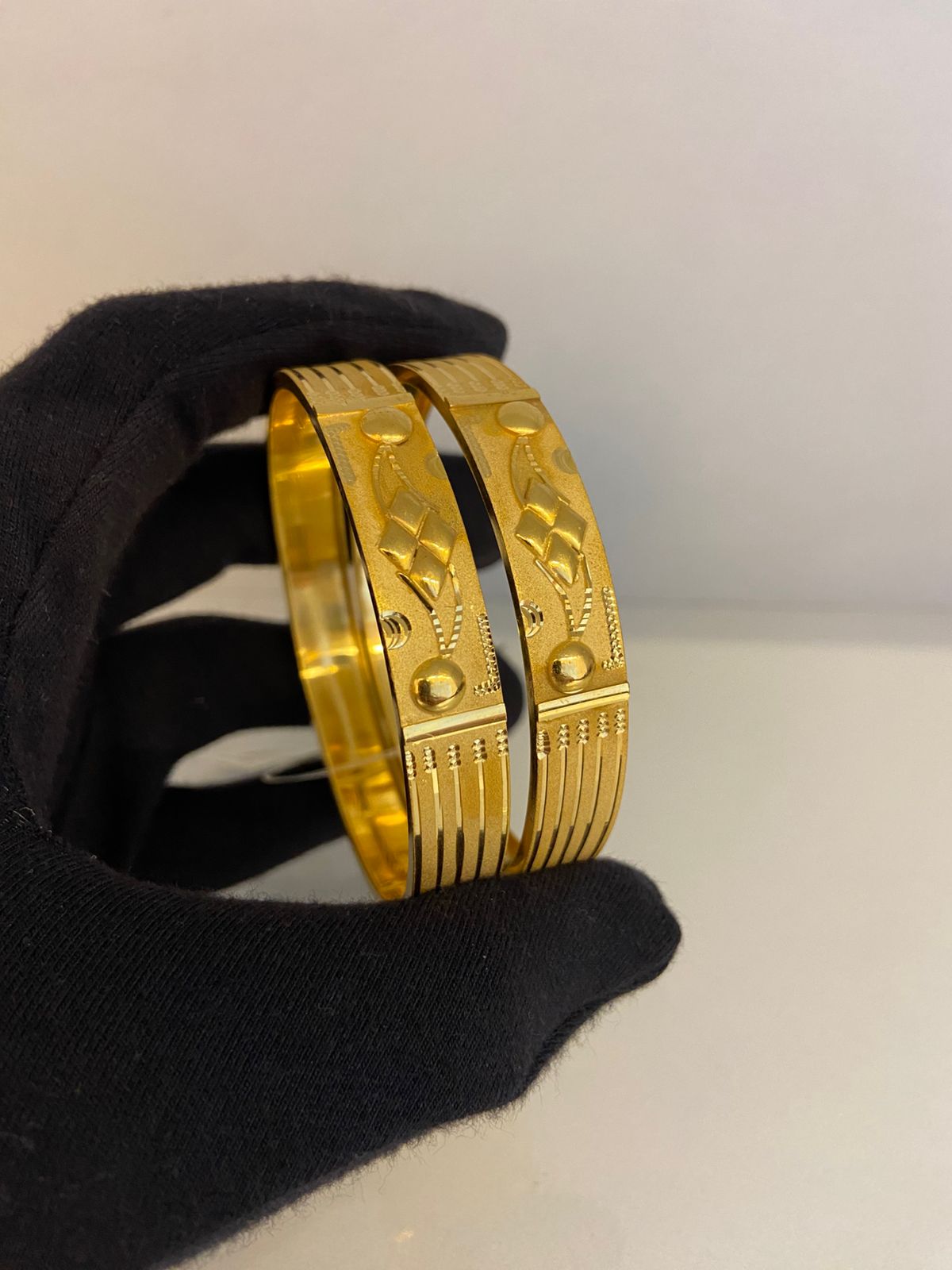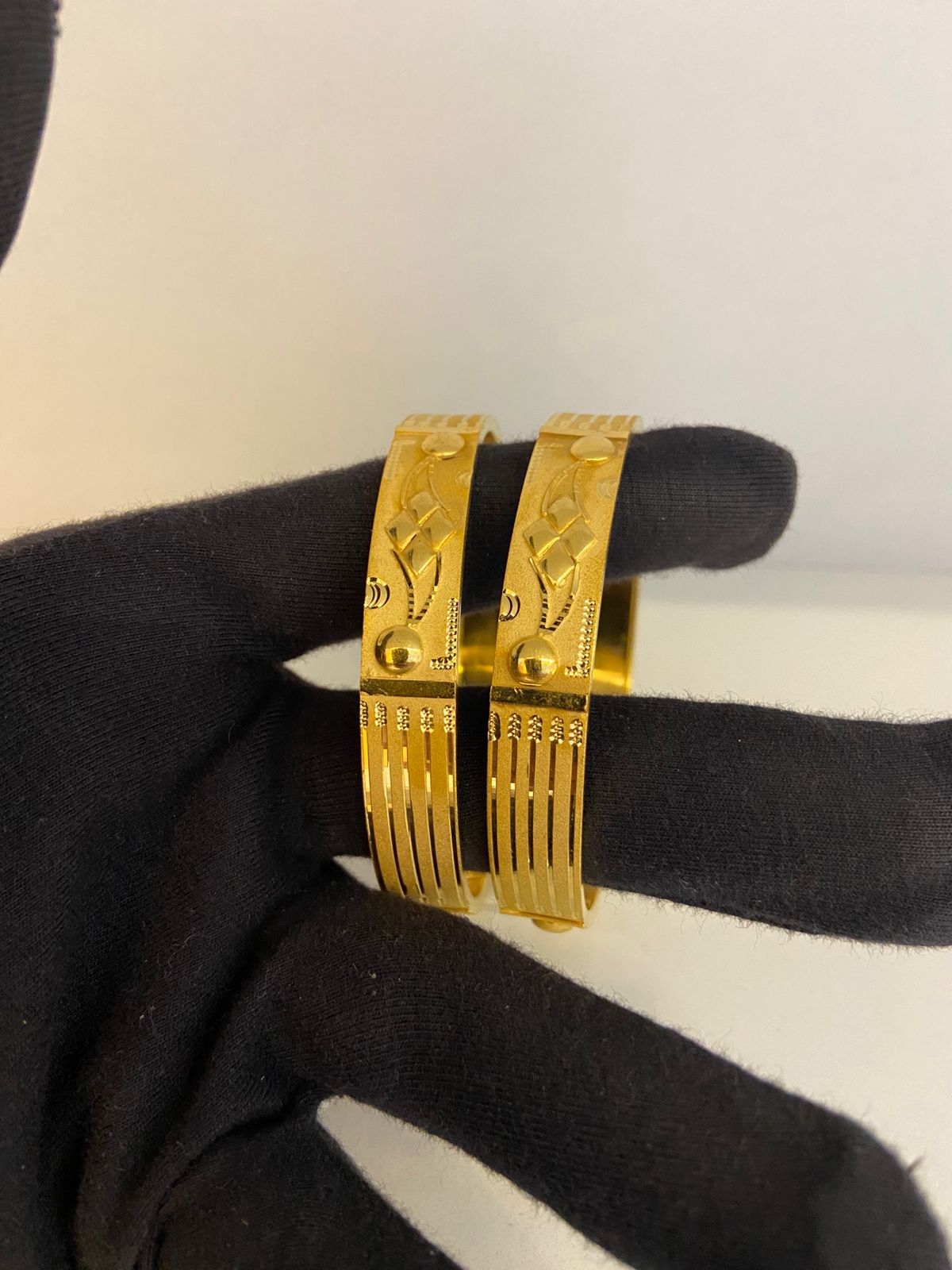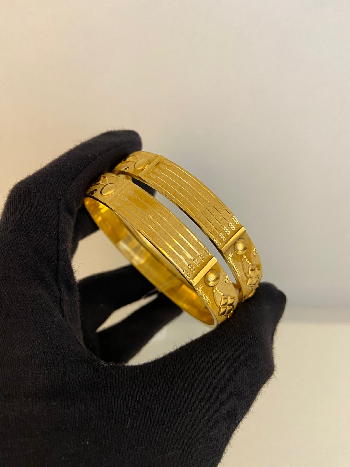 Elegantly crafted with intricate detailing and a radiant finish, these bangles bring a touch of regal charm to festive and special occasions. Perfect for adding timeless beauty to your look.